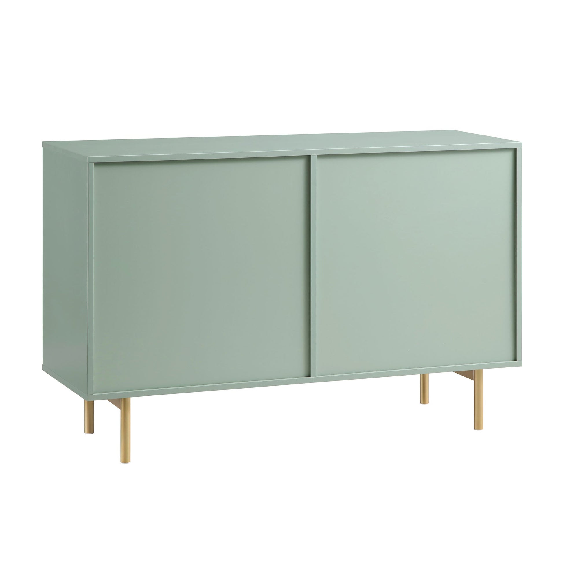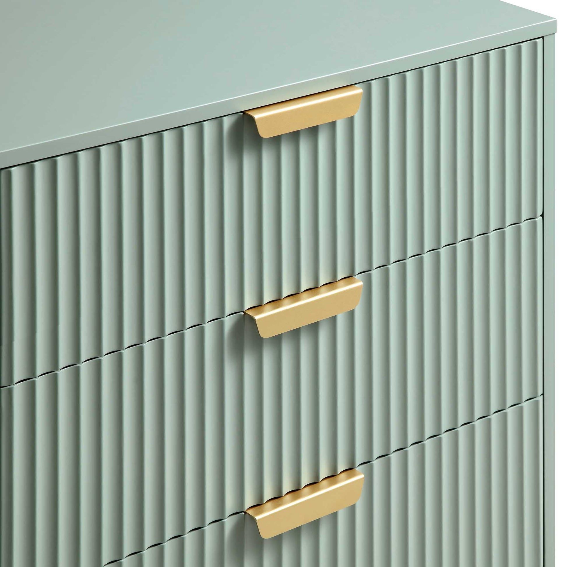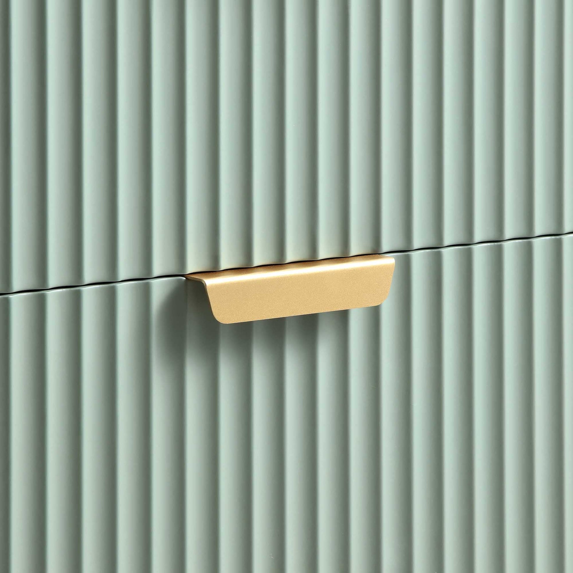 - Ridged door surface finished in trendy sage green matte paint, paired with gold handles and legs give a striking stylish look.