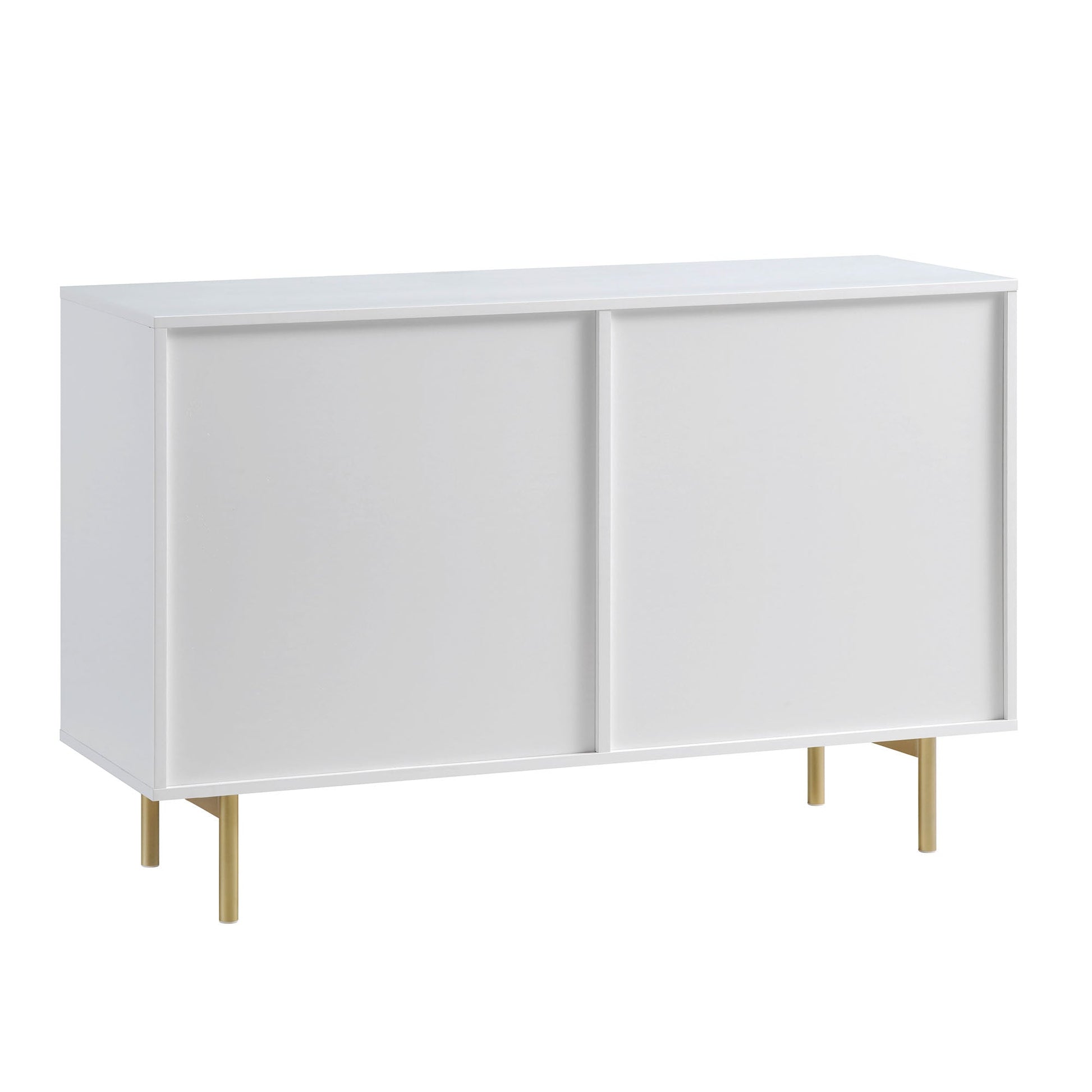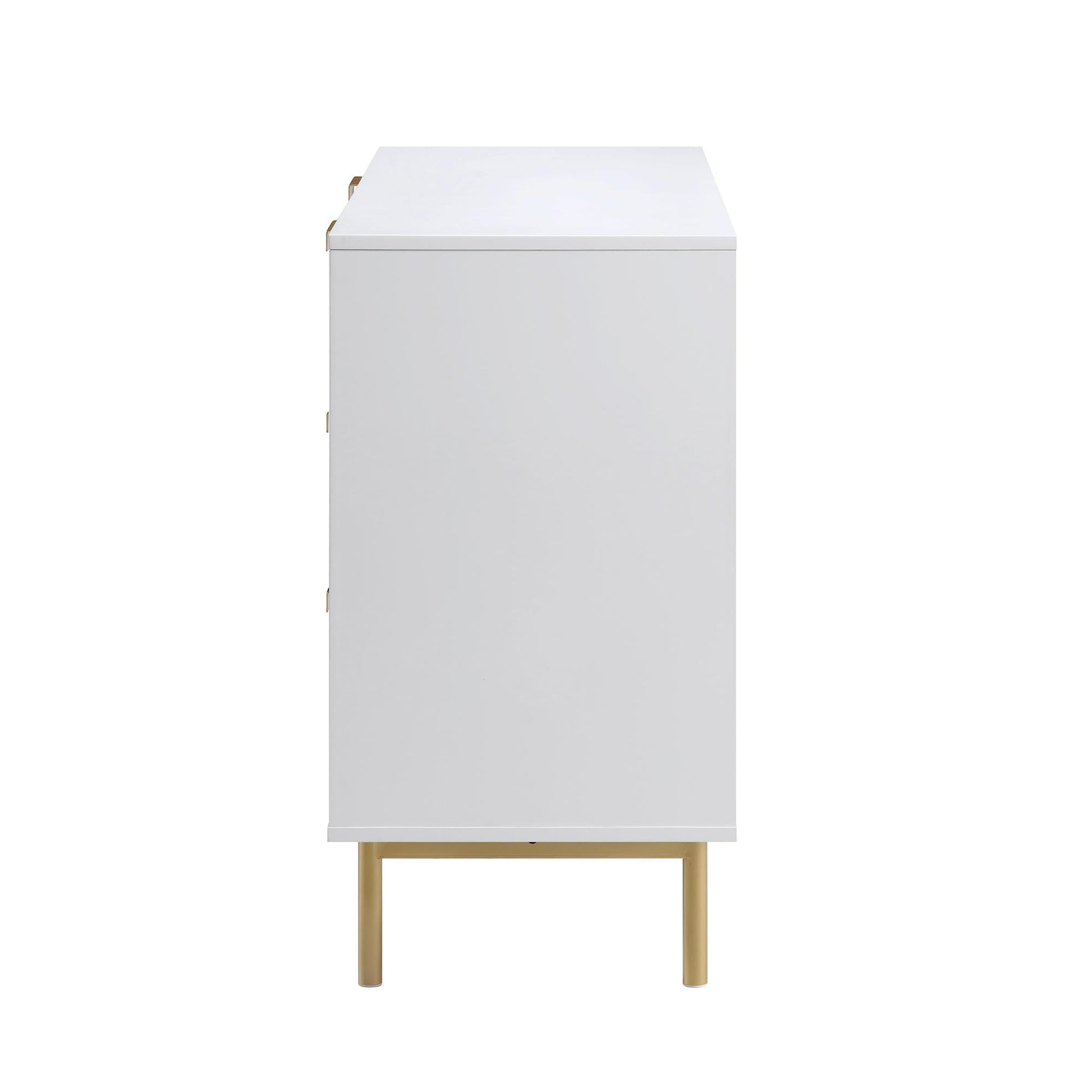 - Ridged door surface finished in matte white paint, paired with gold handles and legs give a striking stylish look.