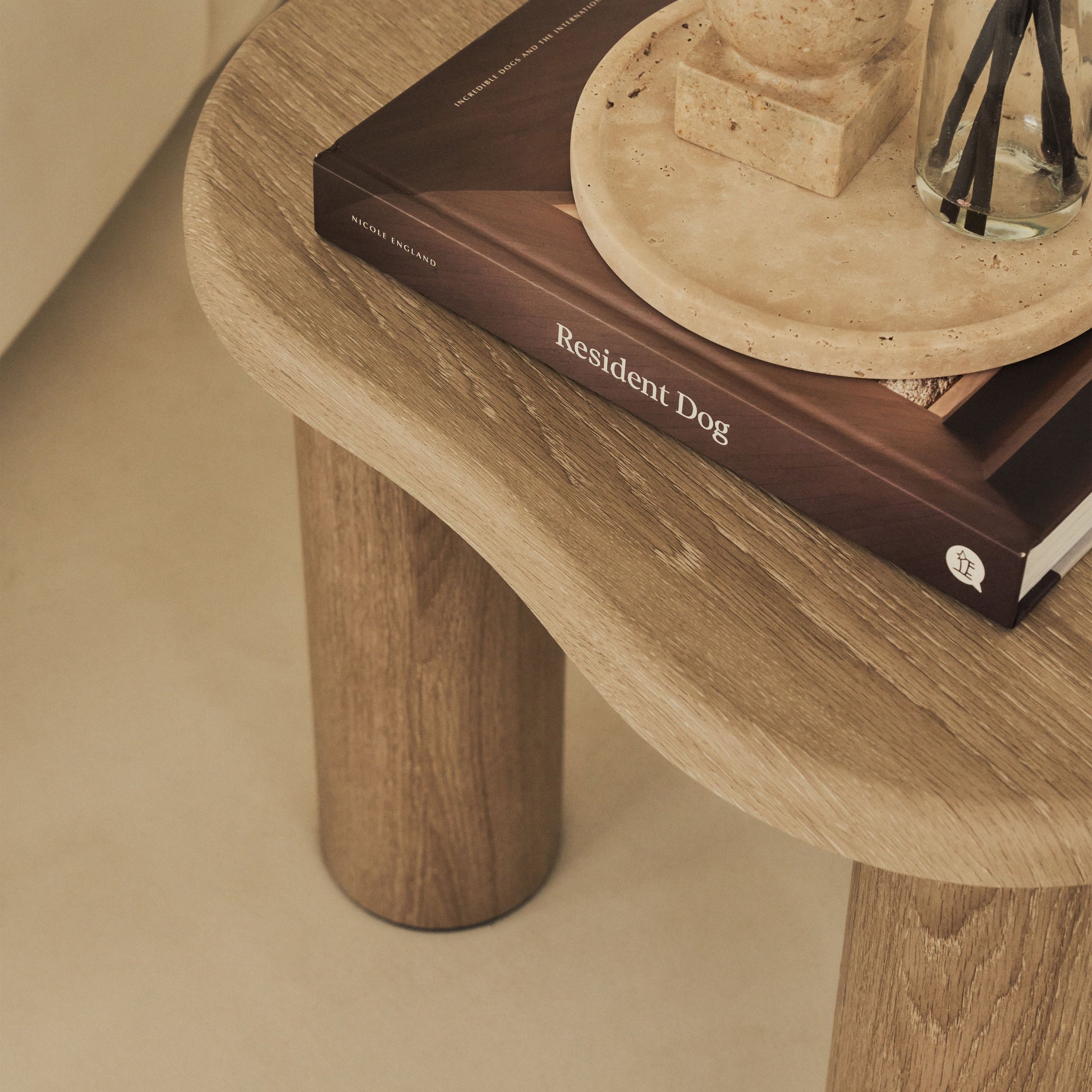 Elevate your living space with the Savanna Side Table. A sleek and simple side table that incorporates a minimalistic design approach with a sophisticated washed wood veneer finish and distinct irregular shape, adding a sense of unique flair to your room. Perfect for displaying your favourite decor or for keeping everyday essentials within reach.