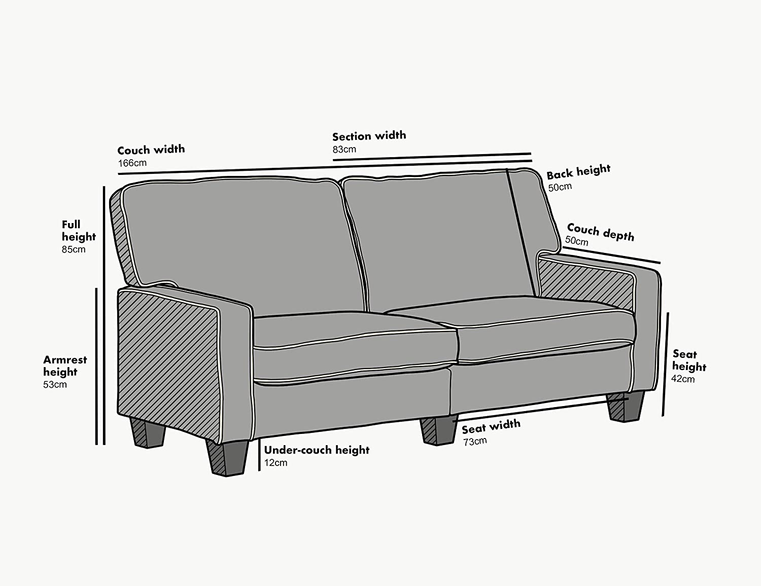 - Size: W 174 x D 80 x H 85 cm. It offers generous seating for 3 people.