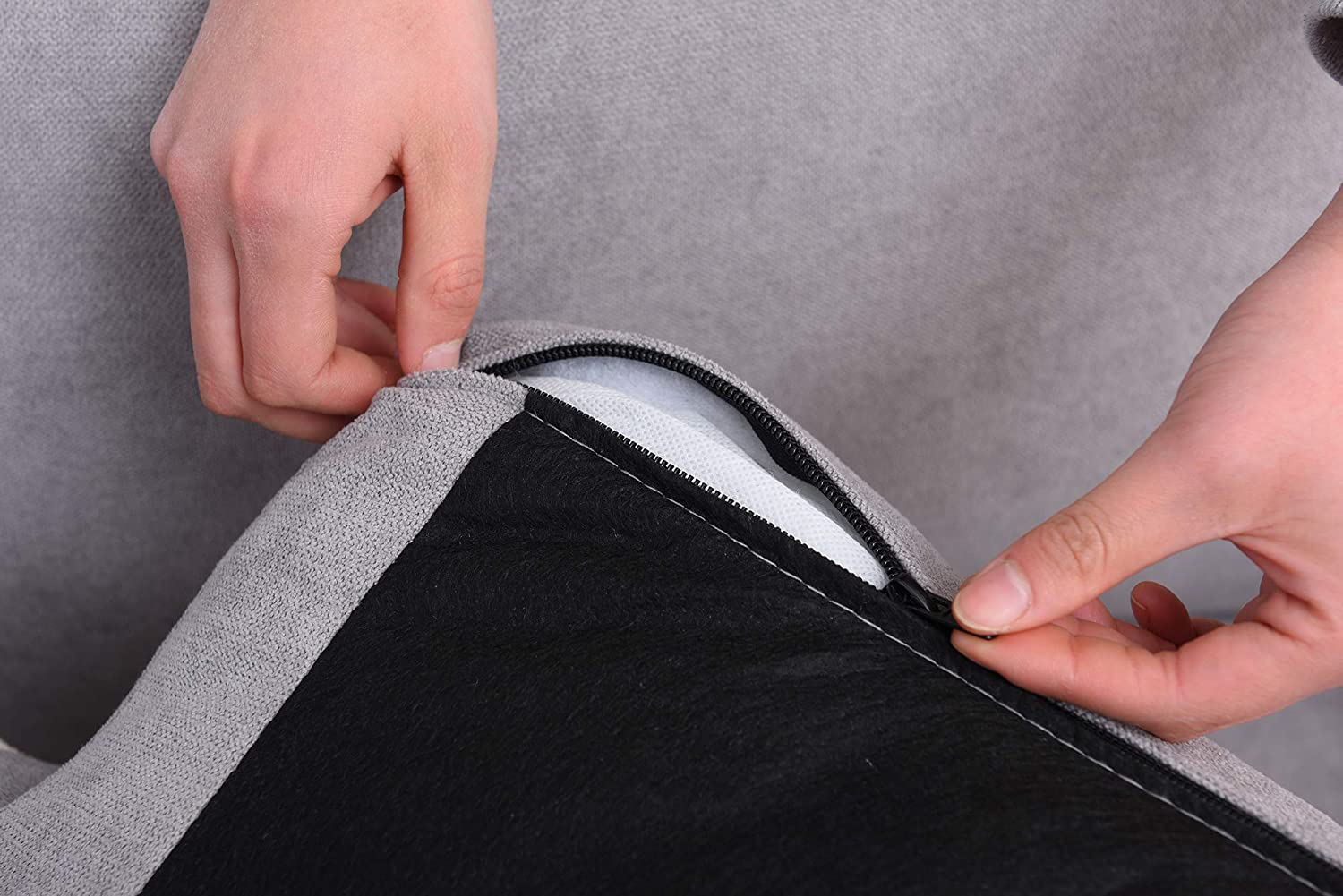- Upholstered in soft textured light grey fabric with contrasting white trim around the edges, this sofa will fit in any cosy home decor. Comfortable sprung seat cushions provide firm and supported seat.
