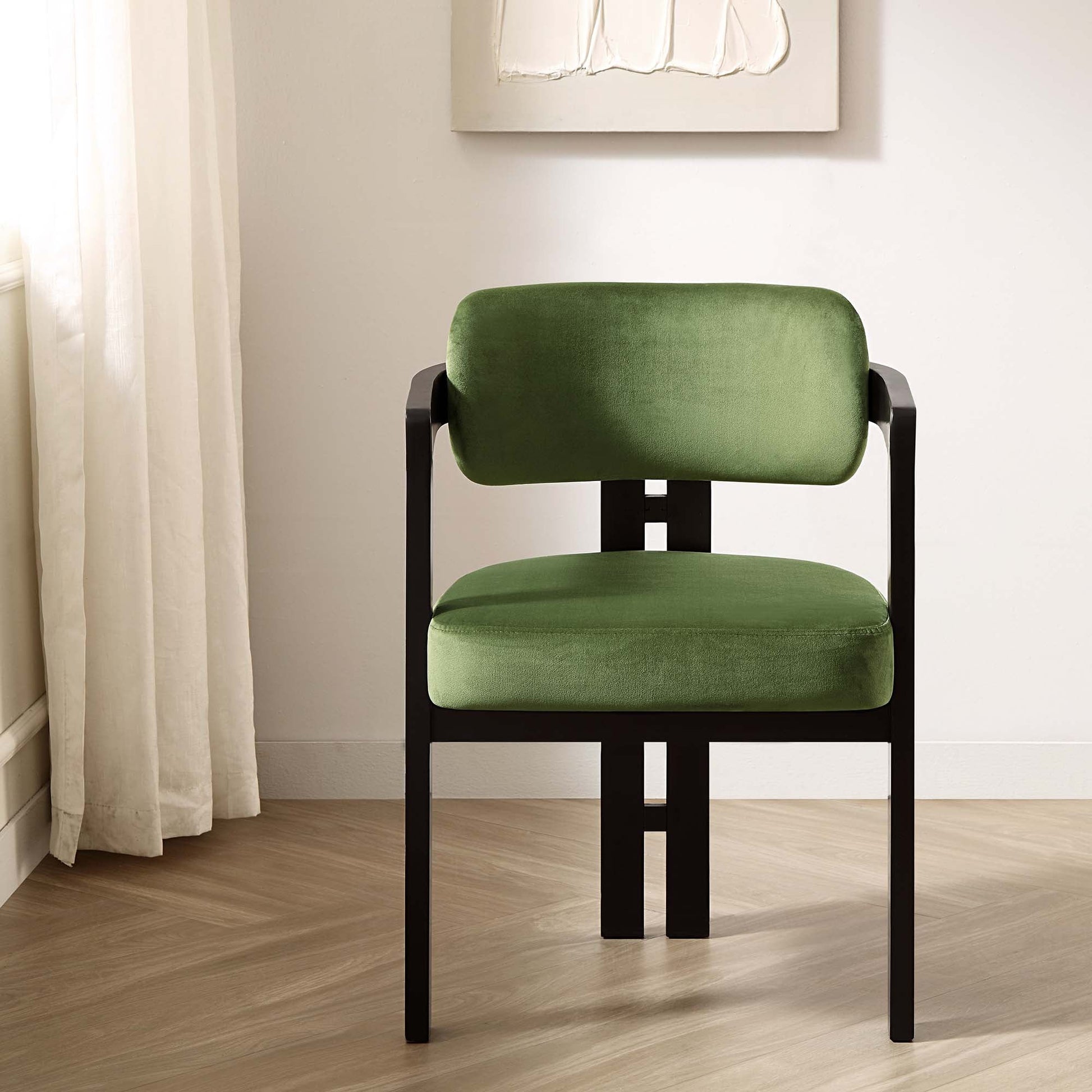 Stanford Curved Oak Frame Upholstered Chair, Moss Green Velvet Black Frame