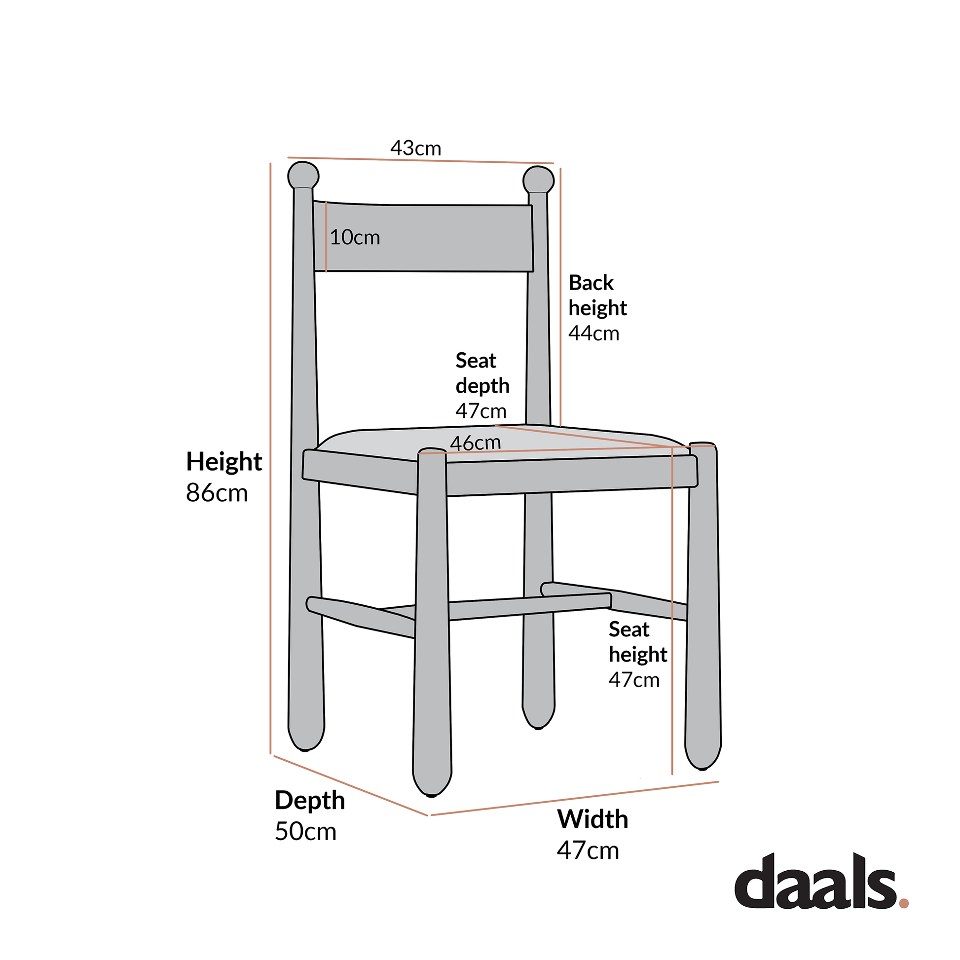 - Size: W 47 x D 50 x H 86 cm. Seat height: 47 cm.