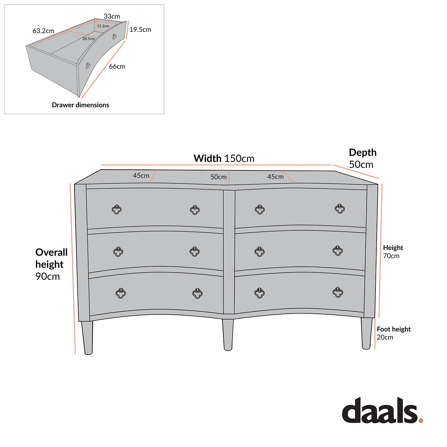 - Featuring distinctive curved design, our Thalia double chest of six drawers is crafted from solid ash veneer in a subtly lime washed finish.
