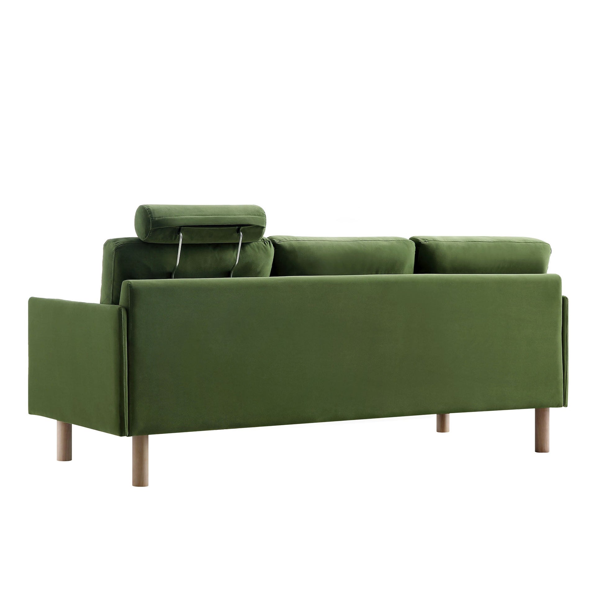 - Upholstered in soft velvet touch fabric in a fern green colour, providing comfortable seating