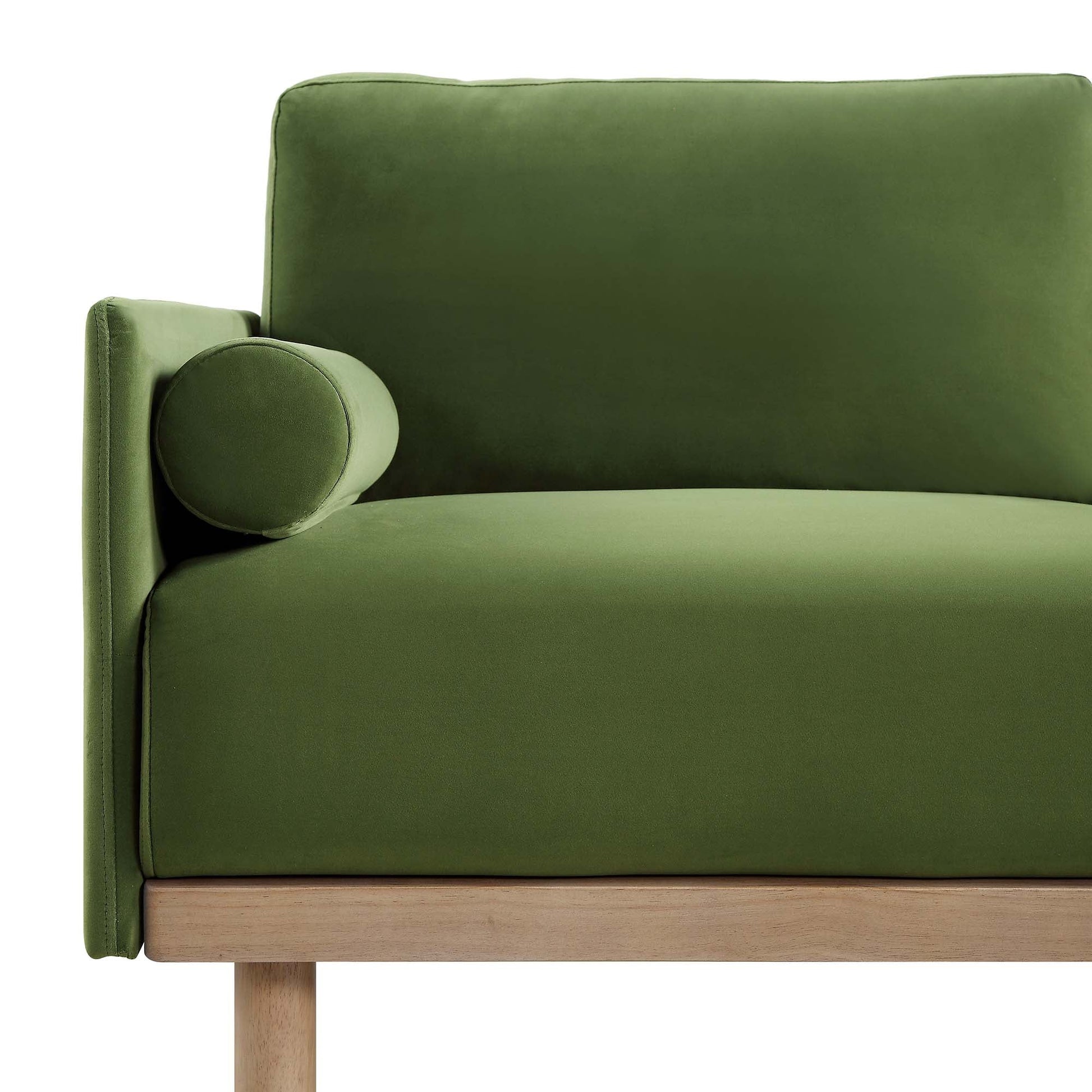 - Upholstered in soft velvet touch fabric in a fern green colour, providing comfortable seating