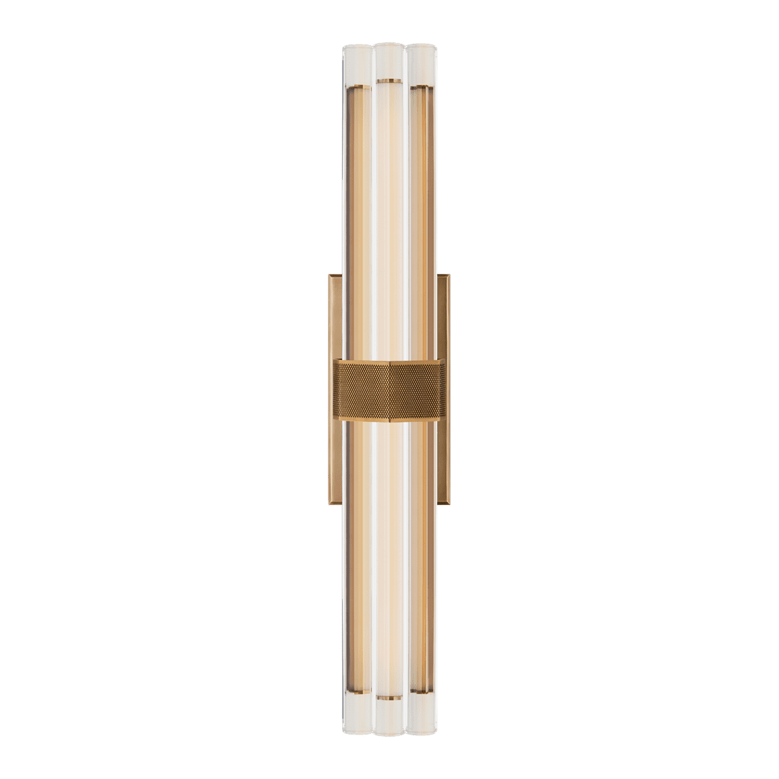 Visual Comfort and Co. Fascio 24" Sconce in Hand-Rubbed Antique Brass with Crystal. Visual Comfort & Co. is a renowned designer and manufacturer of premium lighting, celebrated for its timeless craftsmanship and collaborations with world-class designers.