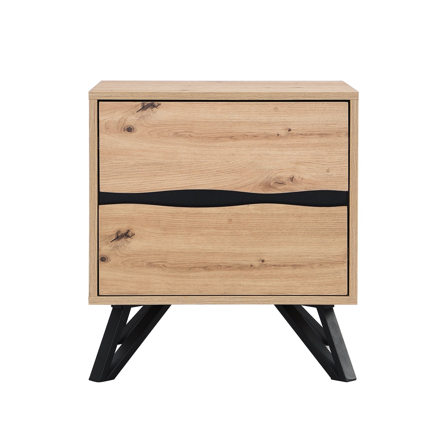- No need to rush out of bed when your essentials are close to hand! Our Weston Oak Effect 2-drawer Bedside Table offers the perfect, simple bedside storage solution. With a minimalist look, the Weston Bedside Table will be the perfect addition to any bedroom.