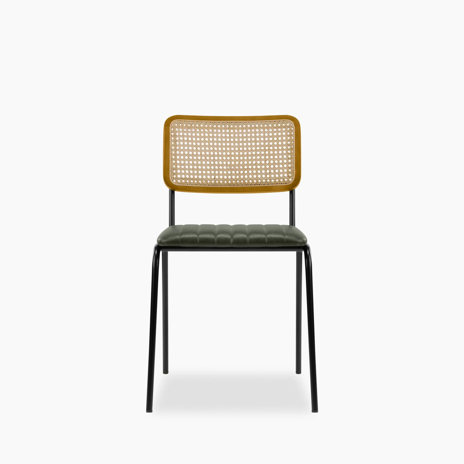 Willis Stackable Dining Chair | Vintage Green Faux Leather & Black