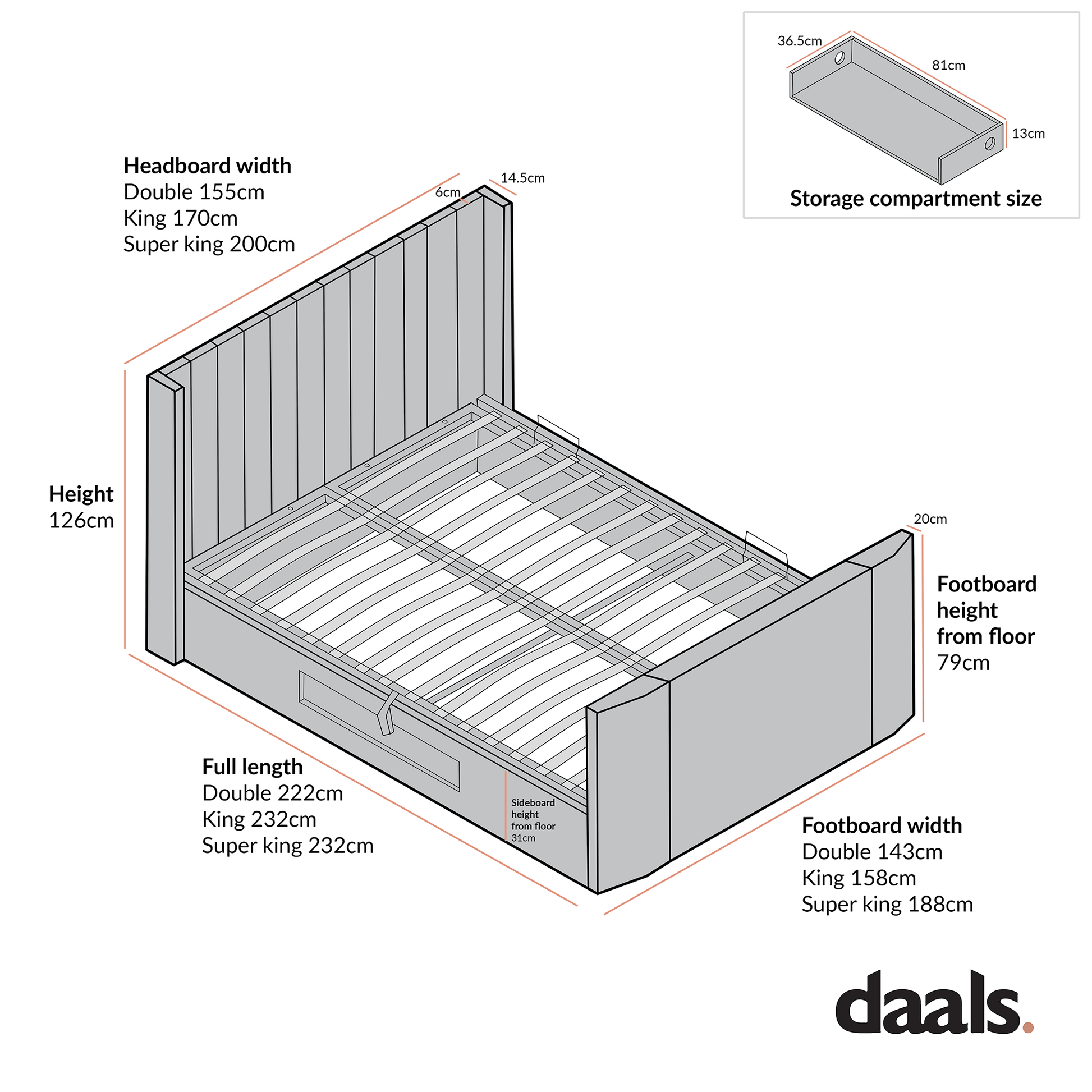 - 5FT King: W 170 x D 232 x H 126 cm / Bed weight: 123.9 kg