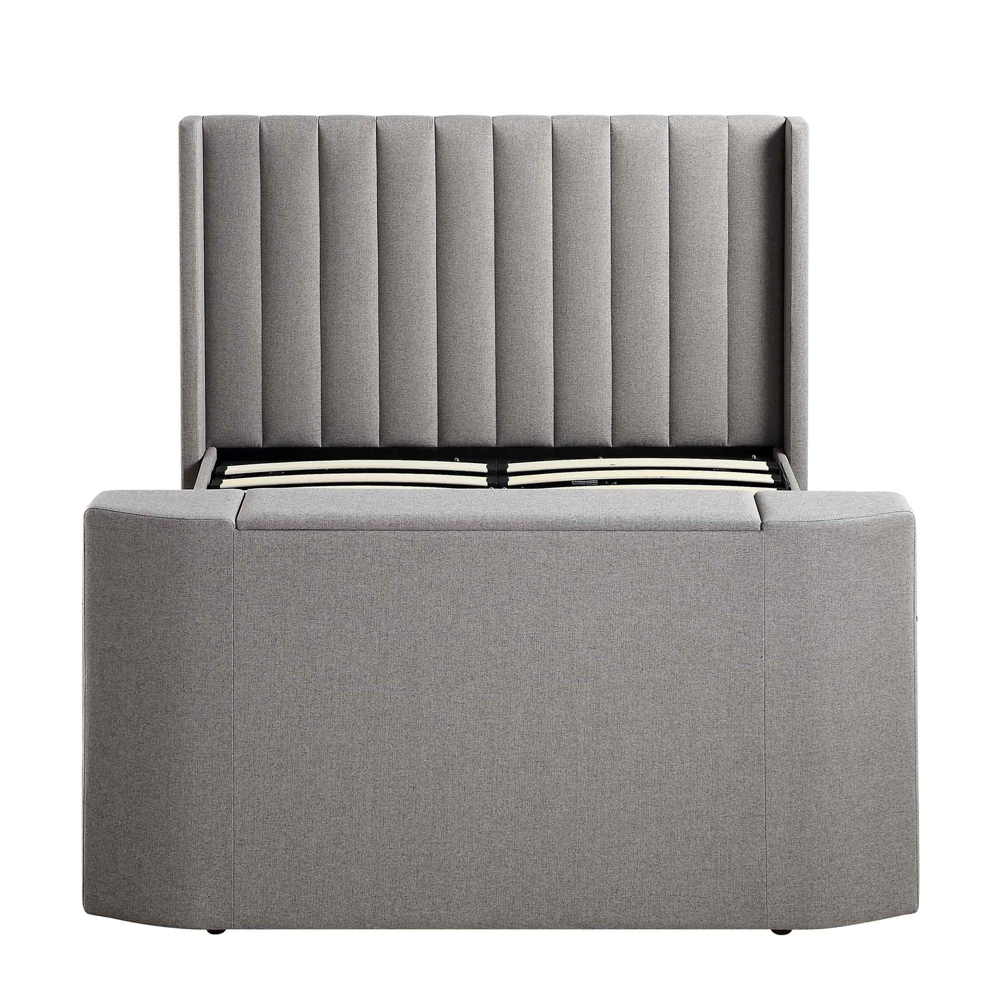- Complete the look: Pictured with our Wilton Grey Fabric Ottoman TV Bed are our Thalia Concave 3 Drawer Bedside Table in Silver Oak, Aurora Hand Braided Teal and Bronze Jute Rug and our Vine Collection Japonica Hand Embroidered Cushion