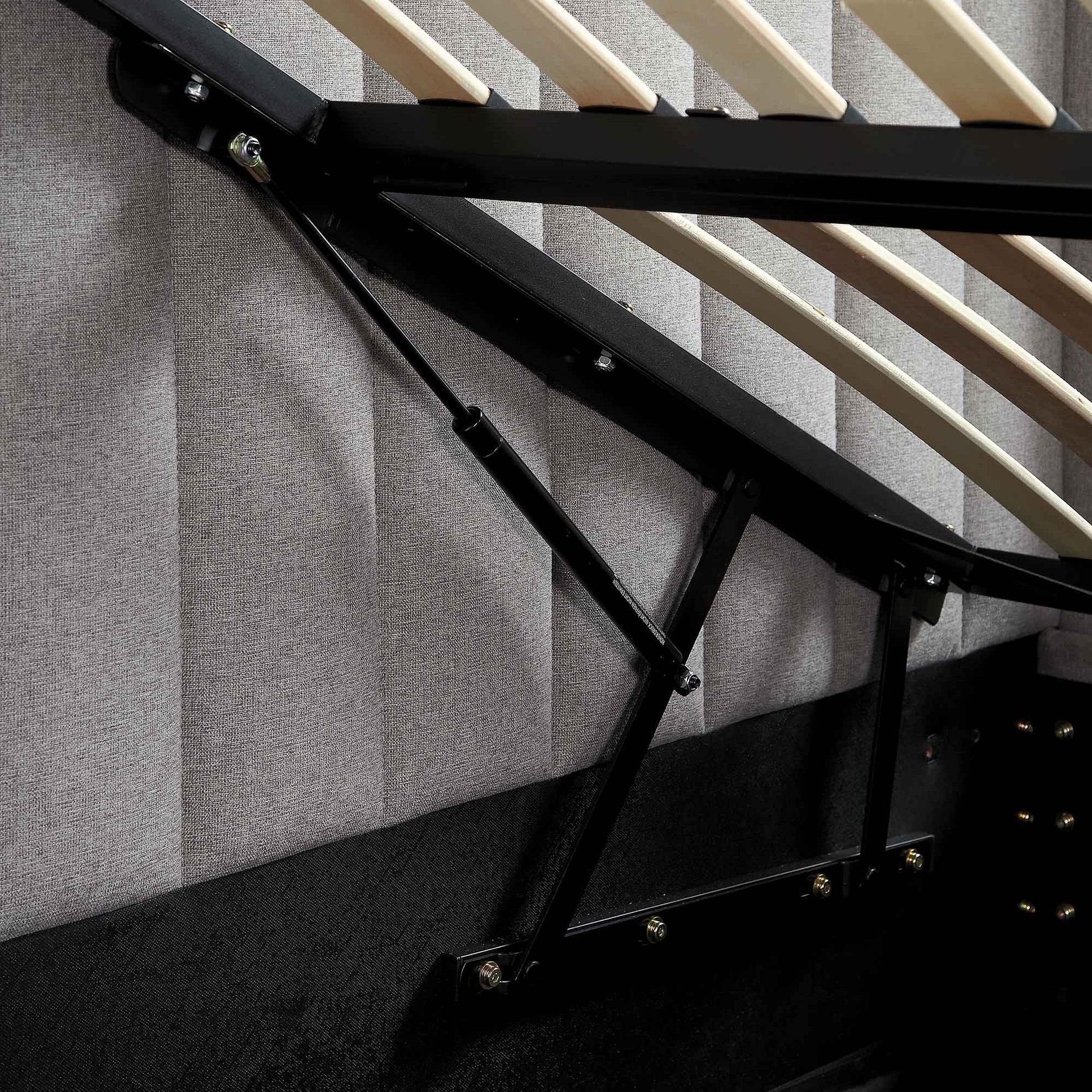 - The ottoman can be easily lift up from the side with gas lift mechanism for 30cm deep discreet storage space.