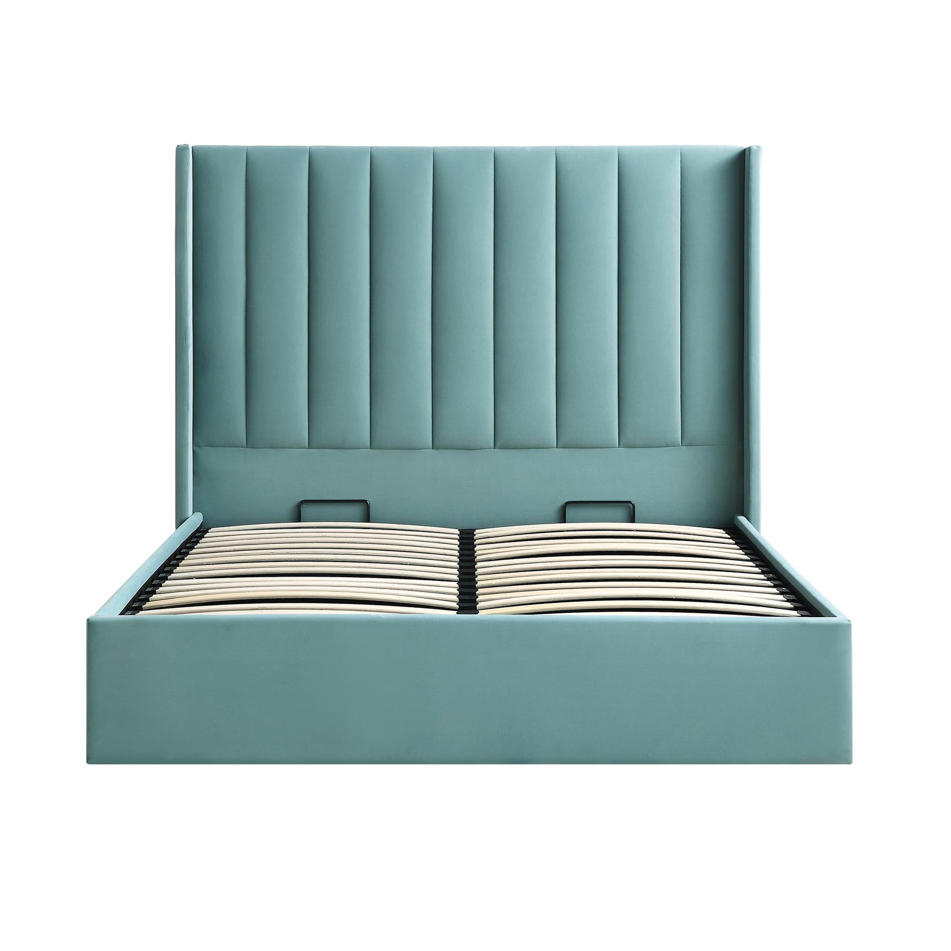 Wilton Seafoam Blue Velvet Ottoman Storage Bed