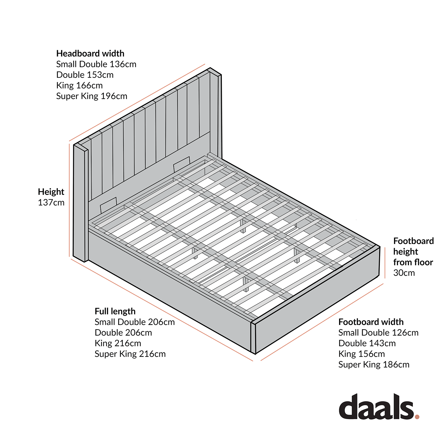 - 4FT Small Double: W 136 x D 206 x H 137 cm / Bed weight: 62 kg